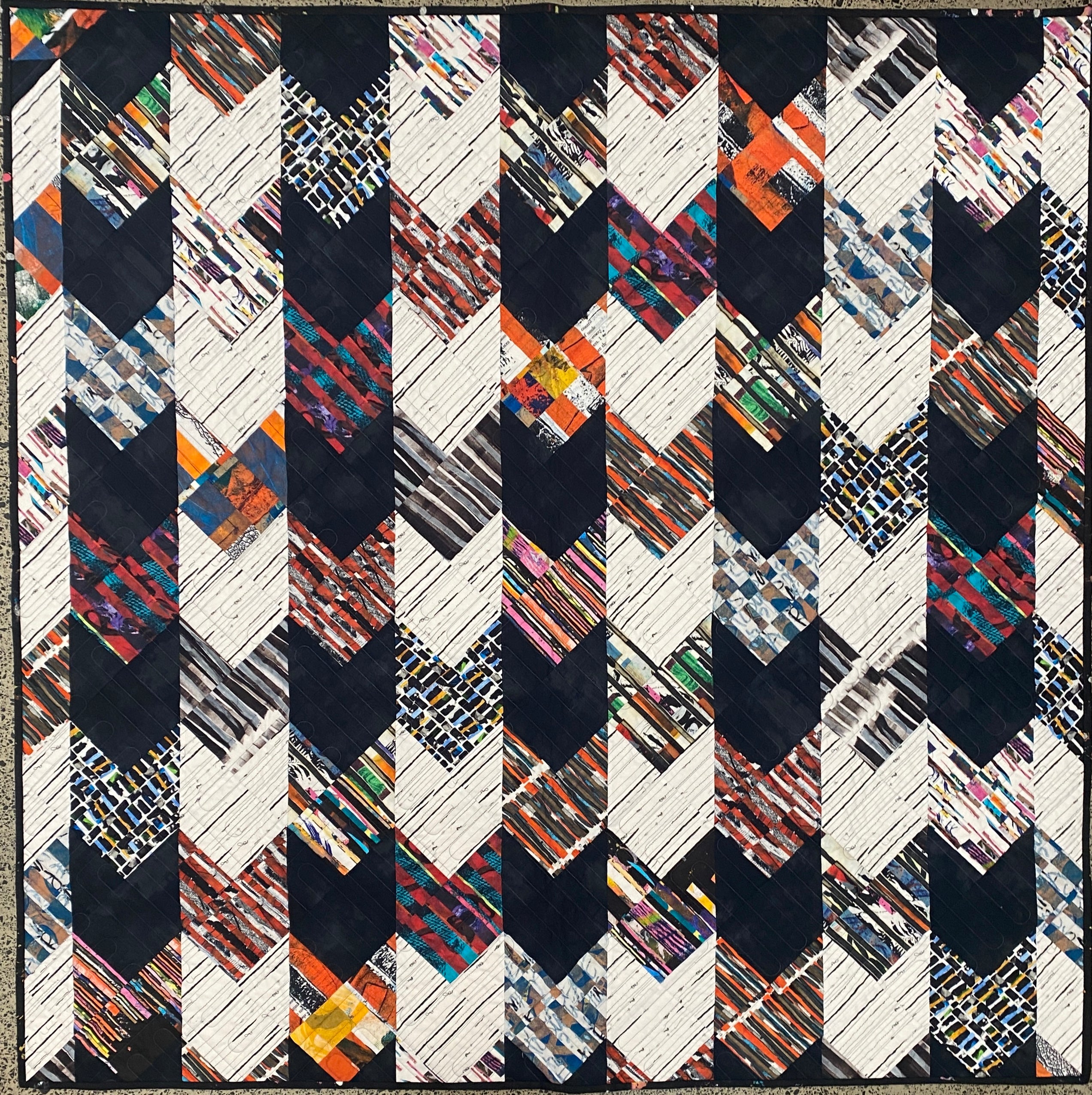 Make this visually stunning lap quilt with Ebonds latest collection called Lineage. Quilt measures up 56" x 67". Binding fabric included. Pattern by Kitchen Table Quilting. Sample sewn by Cheryl Carron and quilted by Quilters Anonymous.