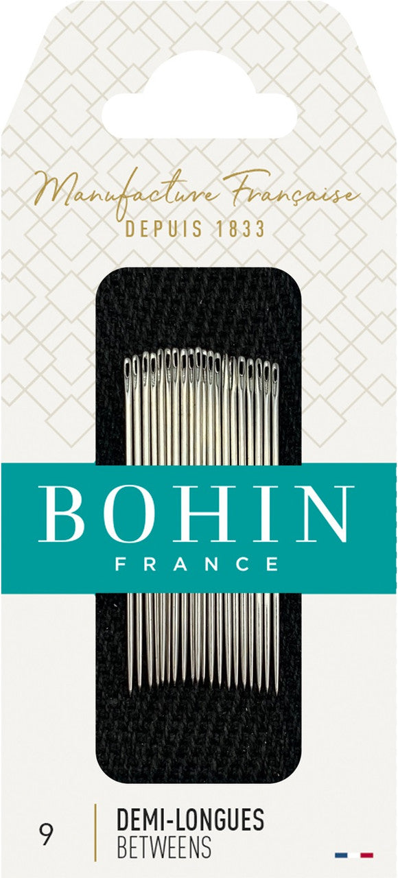 Between/quilting needles are short in length with a small round eye and a sharp point.