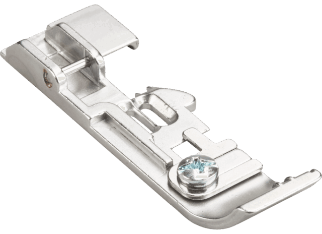 For couching narrow ribbon. With the help of the adjustable guide, ribbons of various widths can be guided precisely into the seam.