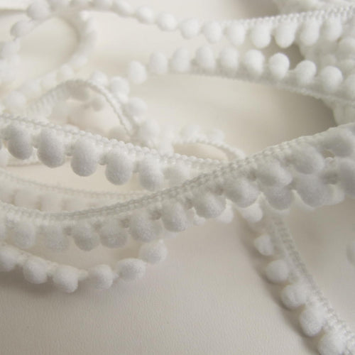 White bobble fringe for a fun finishing touch for your craft projects. Uses could be on pin cushions, cushions etc.