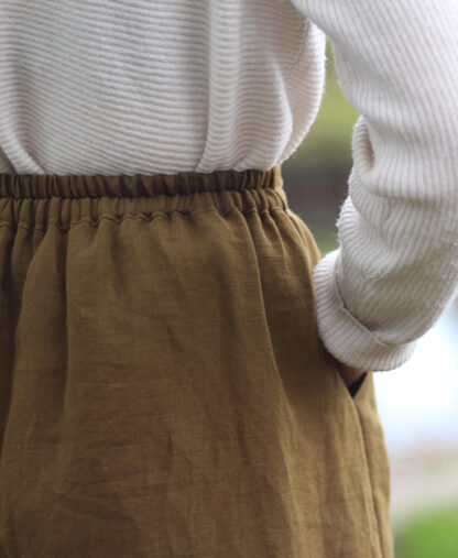 You’ll love the well-fitting and relaxed style of this skirt, and with an elastic back waistband it’s also comfortable. The faux button band, gathers and pockets all make this skirt a versatile and adaptable classic in your wardrobe. Featuring deep inseam or waistband pockets, and an optional faux button band (that’s right, no button holes (just the cred for them! –genius!))