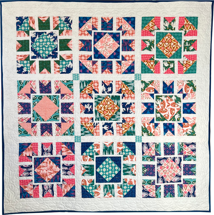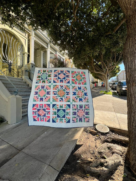 This advanced beginner level pattern is inspired by the Painted Ladies in Alamo Square in San Francisco. The quilt is traditionally pieced, Layer Cake friendly, and offers three sizes, Baby (45” x 45”); Throw (64” x 64”); Bed (83” x 83”). Pattern includes bonus layout instructions for a three color option for all sizes.