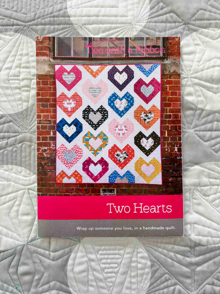 Make a Quilt from the Heart featuring hearts.  This modern and bold Heart design quilt is the perfect quilt to make for someone you love.  You can also  use this design to gift a handmade present for occasions such as Engagements, Weddings or to celebrate to arrival of a precious new baby.  Wrap up someone you love in a Two Hearts quilt of their very own. The pattern is Fat ¼ friendly.